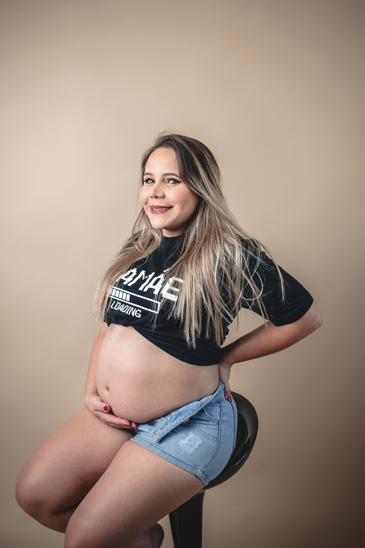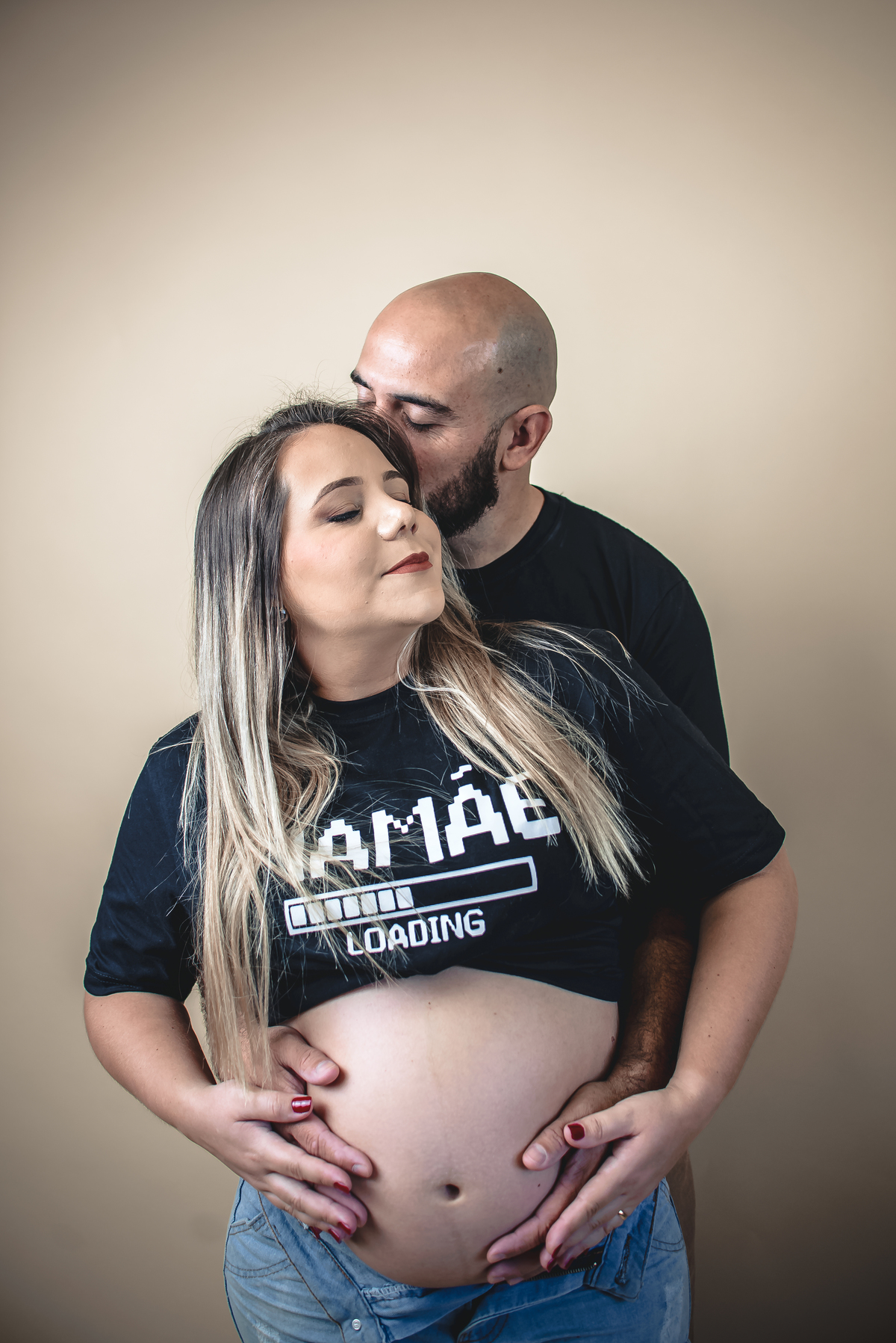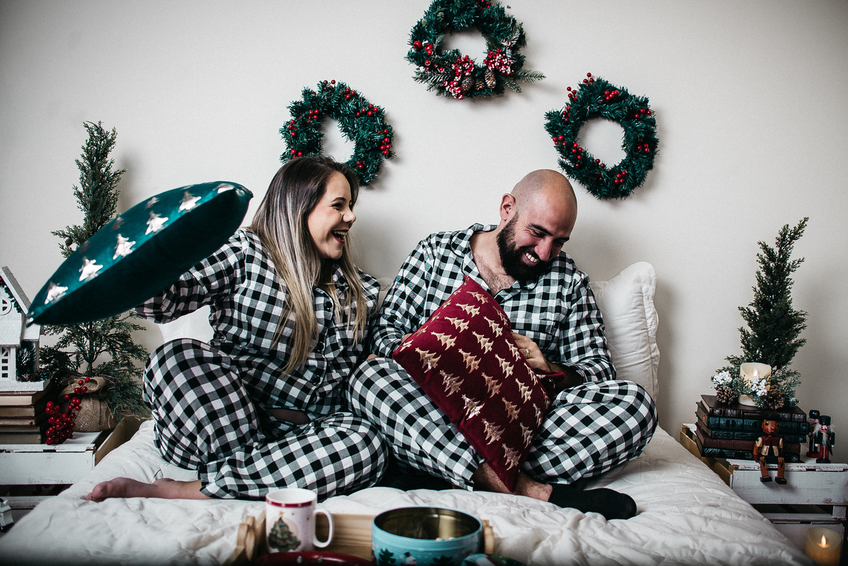 A Aline ama o Natal e fez seu ensaio de gestante antes de mudar para o EUA. Aproveitamos a oportunidade para fazer seu ensaio gestante, fotos com a família e ainda usamos o cenário de Natal, montado esta época do ano no estúdio.